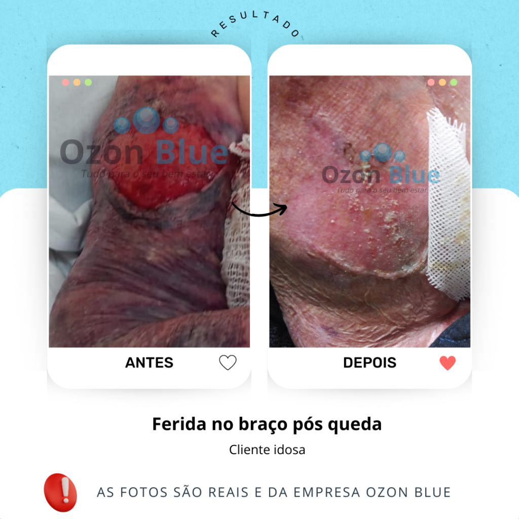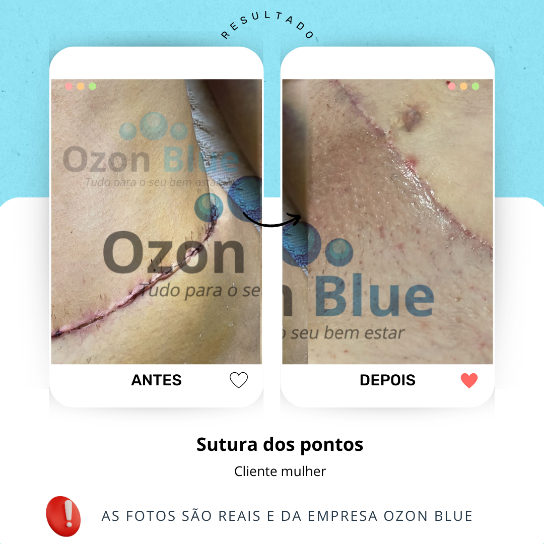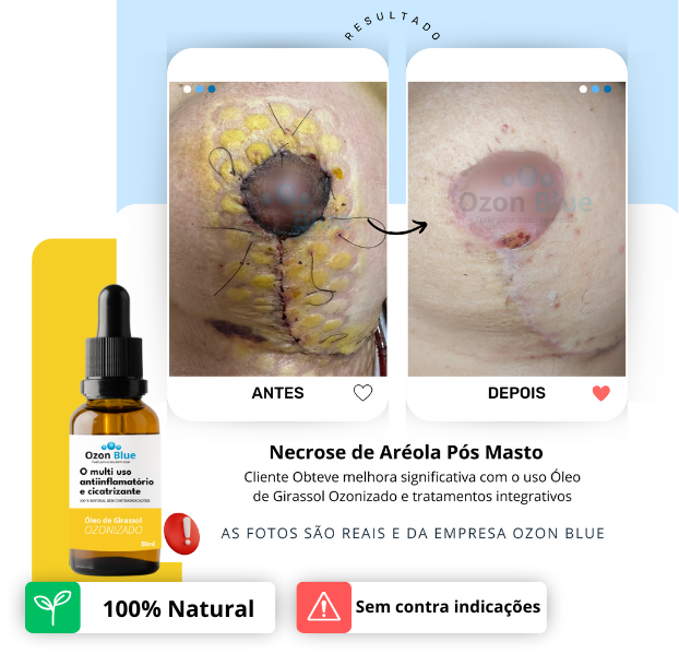 anti-inflamatória, rico em vitamina E e ácidos graxos que regeneram o tecido da pele. O poder antisséptico do ozônio mantém a ferida sem bactérias que atrapalham o processo de cicatrização.