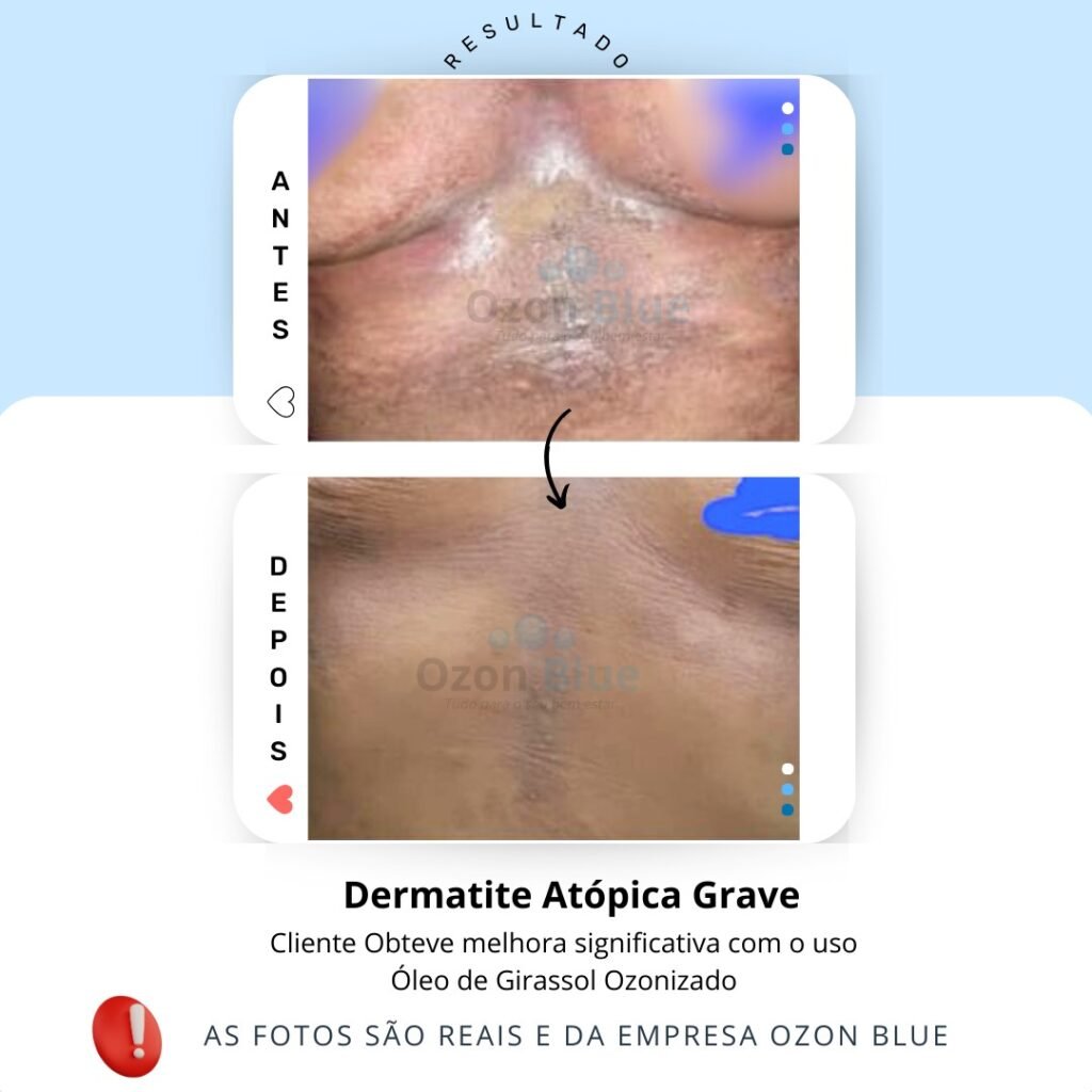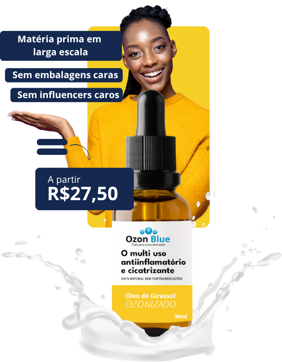 Óleo de Girassol Ozonizado Ozon Blue é produto que trata ferimentos na pele, gerador por qualquer motivo, desde cirurgia a uma queda, mas também funciona muito bem em doenças de pele que são causadas por inflamações como a Dermatite.